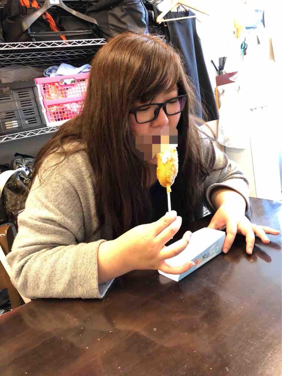 南朝鮮製のおやつを美味しそうに食べながら待機中〜